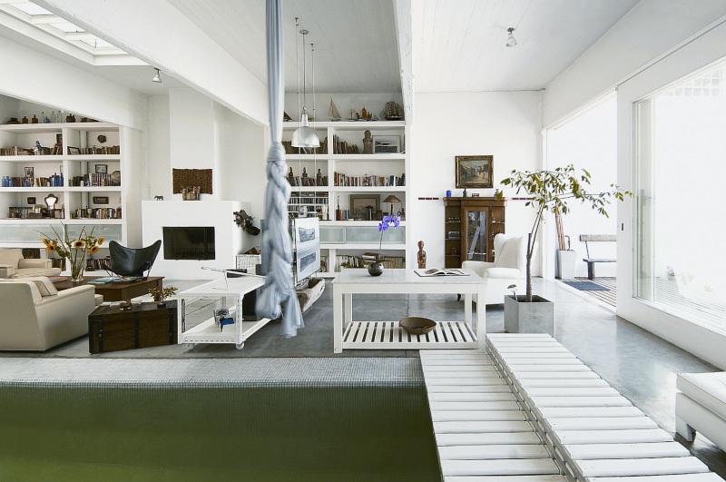 Seguimos con casas espectaculares. La idea de tener una piscina a todos nos gusta, pero hay quienes van un poco mas allá y deciden instalar adentro del hogar. A primera vista puede verse extraño pero atractivo al mismo tiempo, por lo menos en fotos que os muestro, de todas formas tiene que ser de lo mas, darse un baño en la piscina mientras contemplas el fuego en la chimenea.