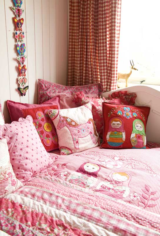 Además de sus preciosos y originales accesorios para mamás y niños, también encontrarás una fantástica colección de ropa de cama infantil (edredones, almohadones, cojines, papeles pintados…) para las niñas con colores cálidos y armoniosos mezclando estampados, rayas y bordados y para los niños predominan los tonos azules, rojos y marrones. La temática utilizada en las impresiones de los tejidos es muy divertida y no pasa de moda.