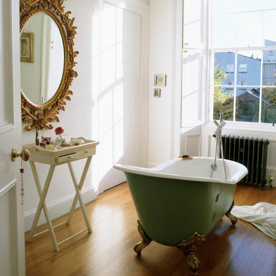 No por coger esta pieza de estilo clásico tiene ser el baño así, el exterior de la bañera puede ir pintado de un color ácido, de negro...para hacer más moderno el entorno. Un detalle chulo es la conservación de las patas en blanco o dorado.