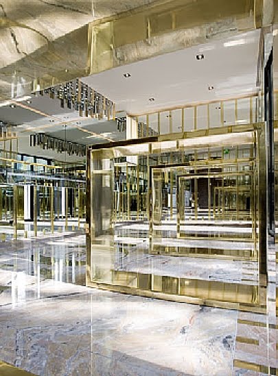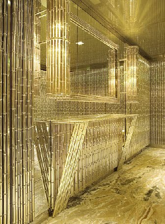 En la Via Carlo Poerio, en Milan, encontramos el restaurante diseñado por Domenico y Stefano, mas conocidos por Dolce & Gabbana. Se llama Gold y en el todo desprende un reflejo dorado increíble, desde los baños, los bordados de las servilletas, los miles de espejos haciendo reflejos, las velas, las luces… pero sin resultar demasiado cargante.