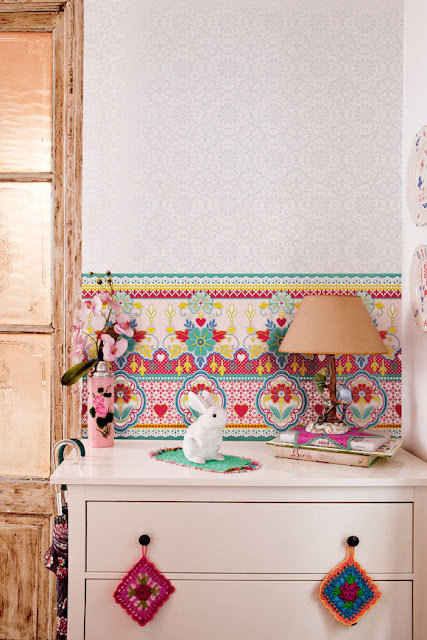Han sido creados por Catalina Estrada, una talentosa artista colombiana que ha diseñado unos alegres papeles pintados para interiores, la artista no teme añadir colores ni formas, creando ambientes contemporáneos con un toque exótico. Aunque esto no es mas que solo una de sus facetas. ¿Que os parecen? ¿Y vosotros? ¿Os atreveríais a ponerlos en vuestra casa o lugar de trabajo?